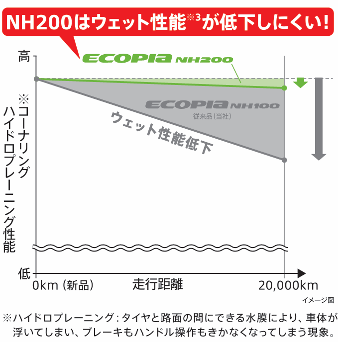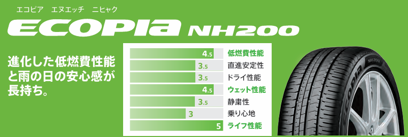 ・従来品のエコピア(過去OE品含)に比べ低燃費性能が向上しており、より経済的になります。